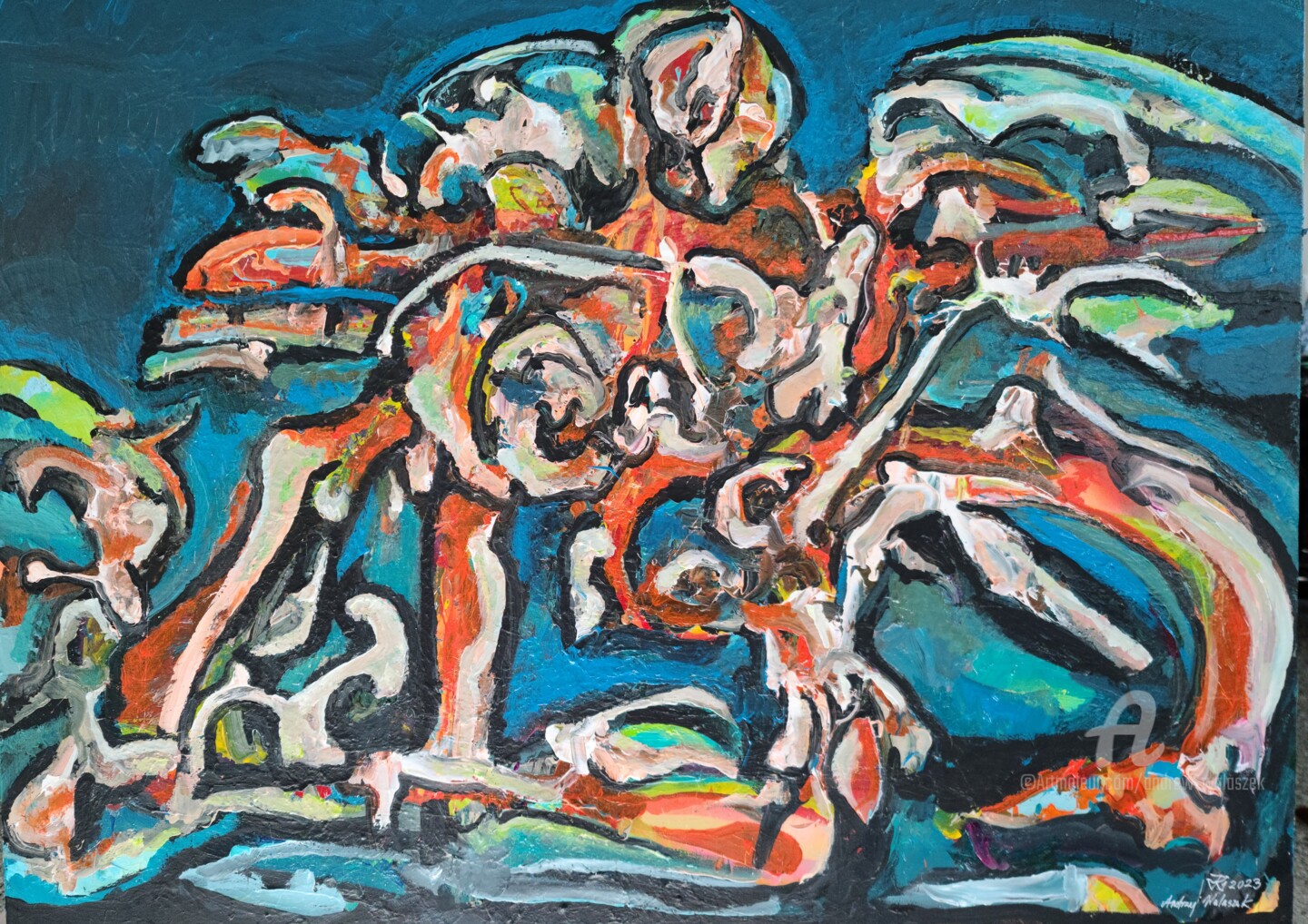 Ixionidae, or "Sons of Ixion," is a creature from Greek mythology with the upper body of a human and the lower body and legs of a horse. This painting is an abstract named after this creature purely by chance.